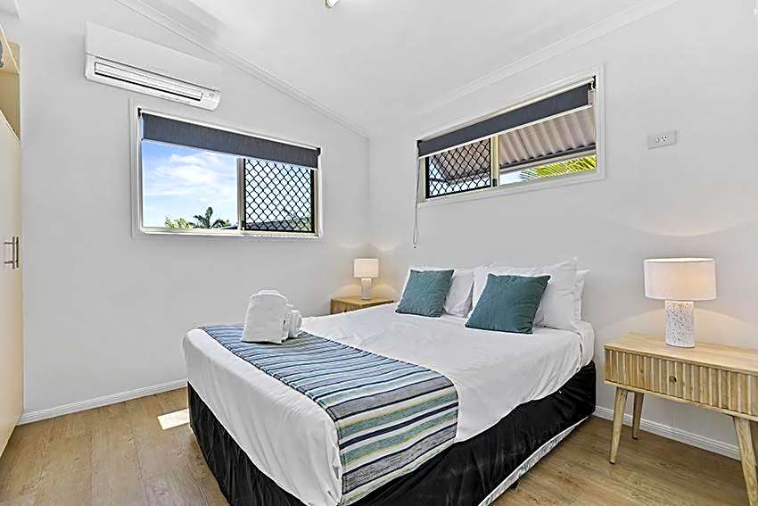 Newly built in November 2010, this modern holiday cabin has a fully equipped kitchen with dishwasher, air conditioning, indoor and outdoor dining, large flat-screen TV, DVD player and a spacious balcony. Each cabin has 2 private bathrooms and covered car parking.